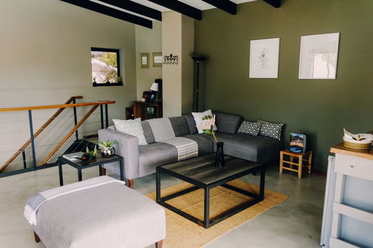 It is very luxurious and ultra- modern, with lots of natural light. It has a small kitchenette with all the mod-cons of an Airfryer, Nespresso coffee machine and a big fridge. The large open-plan lounge and dining area leads out onto a private balcony. You will enjoy stunning views of the garden and pool area. The beautiful Constantiaberg mountain is in the distance and visible from some of the windows.